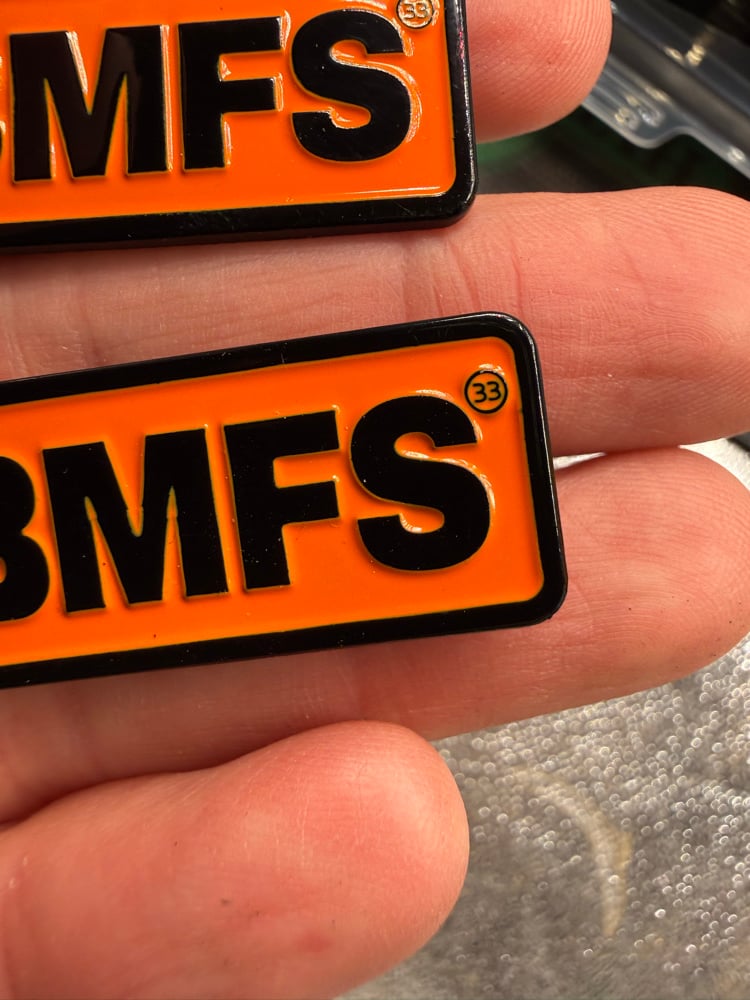 BMFS soft enamel pin - BLAZE ORANGE version